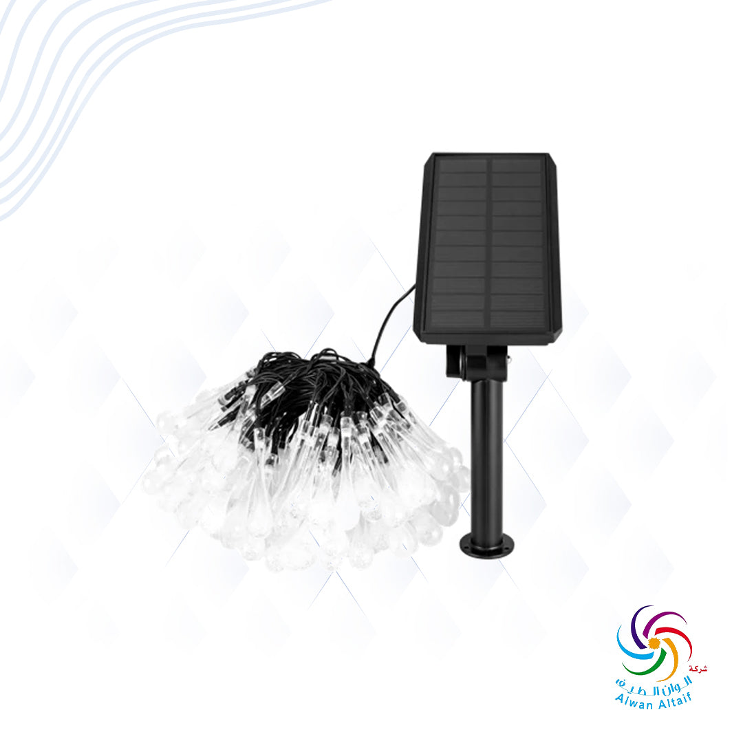 إنارة RGB ديكورية للحدائق DS036 – طاقة شمسية + شحن مباشر – شكل قطرة – سلسلة 10 أمتار – 100 لمبة LED – تحكم عن بعد – مقاومة للماء IP55.