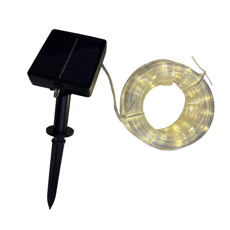Bring charm and elegance to your outdoor space with these Yellow Wire Solar-Powered String Lights. Perfect for decorating plants, fences, umbrellas, or any outdoor feature with a cozy warm glow.