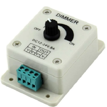 ديمر بسعة 8 أمبير يُستخدم للتحكم في شدة التيار الكهربائي المار إلى الحمل (مثل مصابيح LED أو أحمال منخفضة)، مما يسمح بتعديل الإضاءة أو القدرة حسب الحاجة. يأتي المنتج بدون ضمان رسمي (“بدون كفالة”)، وهو مناسب للتطبيقات البسيطة المتحكم بها.